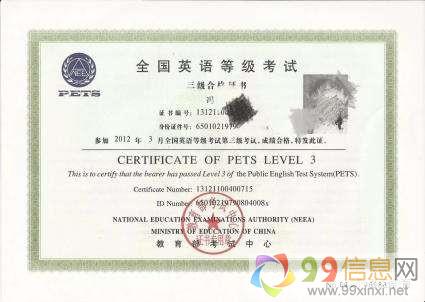 而且,教育部正在大力推广这种考试,并使之成为我国所有用人单位衡量英语专业人士英语水平的唯一标准。社会考生不能报考大学英语四六级,因此,随着英语学习者越来越多,PETS考试很有可能成为最热门的社会考试来自www.99xinxi.net。